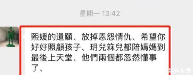 而且尤其是他们全家聚餐的照片,流露了一次又一次,这一次再也没有两个小孩子的身影了。 想来大S临终前千叮咛万嘱托放下恩怨,照顾好两个孩子,肯定是希望孩子们能够在健康快乐的环境中生活。